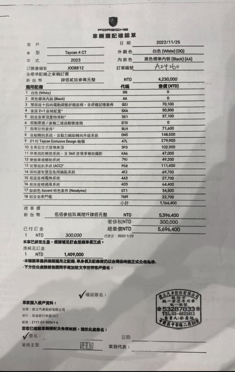 【2023 Taycan 4 C. T.】