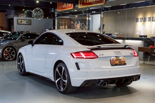 LED極光頭燈組、LED尾燈組(含動態指示方向燈)、電動升降尾翼、TT專屬鋁製油箱蓋、S-Line外觀套件、免鑰匙、CarPlay、全數位虛擬座艙、定速巡航、Drive Select駕駛模式選擇、倒車顯影、恆溫空調、跑車座椅、ISOFIX安全座椅